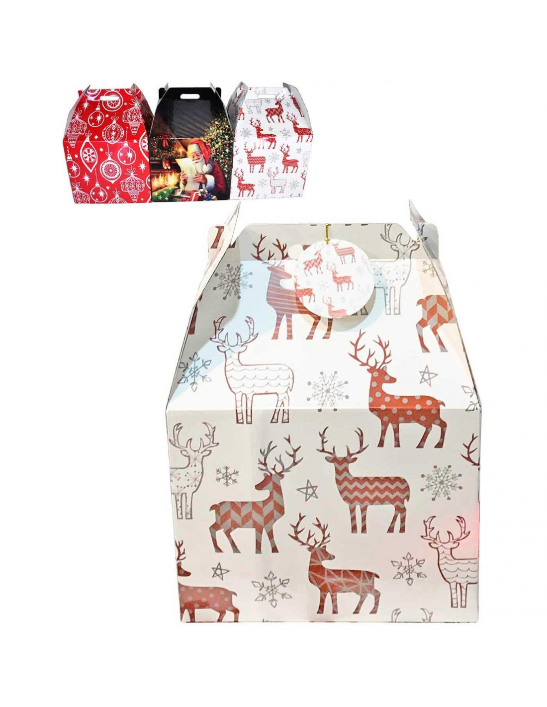 Tradineur - Caja de cartón para lote de Navidad, cesta plegable con asa, guardar regalos, botellas vino, resistente, 40 x 32 x 30 cm, diseño aleatorio