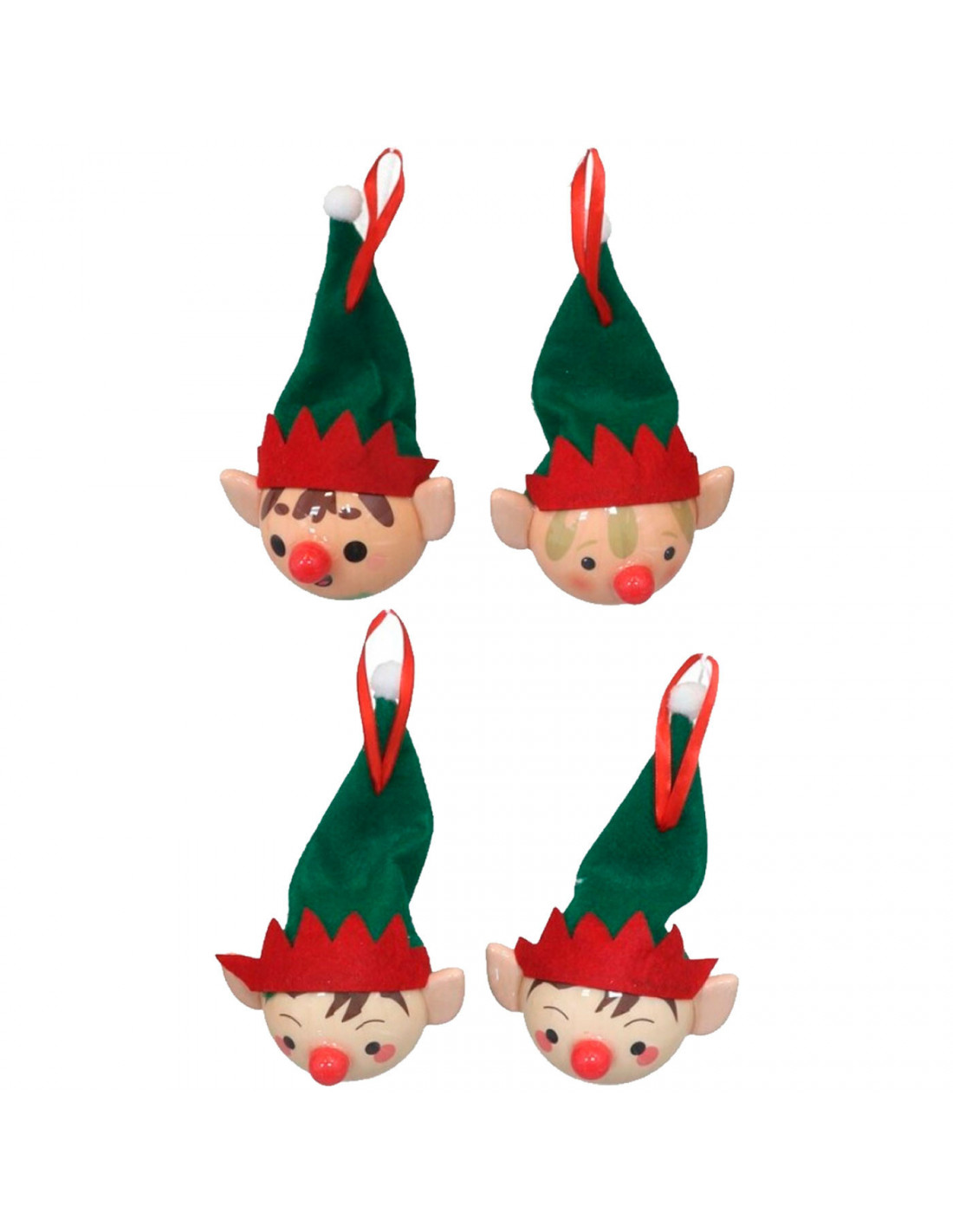 Tradineur - Colgante de Cabeza de Elfo Navideño - Fabricado en Poliéster y Plástico - Artículo decorativo para Navidad - Ø 8 cm - Modelo Aleatorio