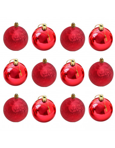 Pack de 12 bolas de navidad rojas, diámetro 8 cm, con cordón dorado para colgar en el árbol o abeto navideño, adornos festivos colgantes, decoración de Navidad