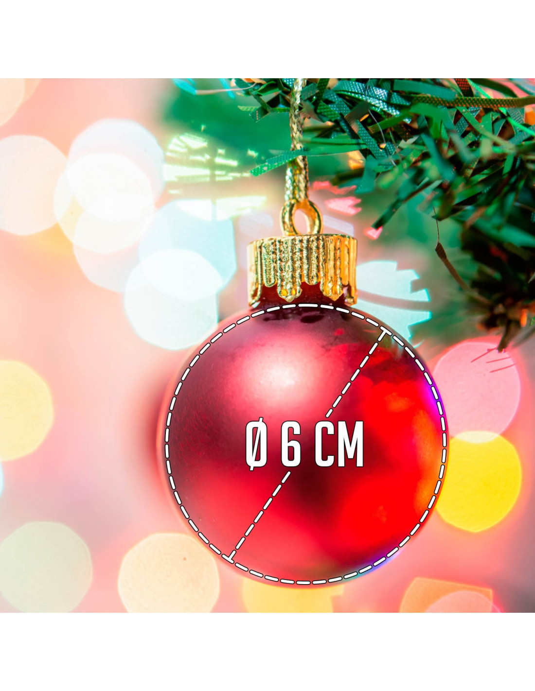 - Tamaño ideal: Con un diámetro de 6 cm, estas bolas son perfectas para árboles de diferentes alturas, asegurando una decoración vistosa y equilibrada.