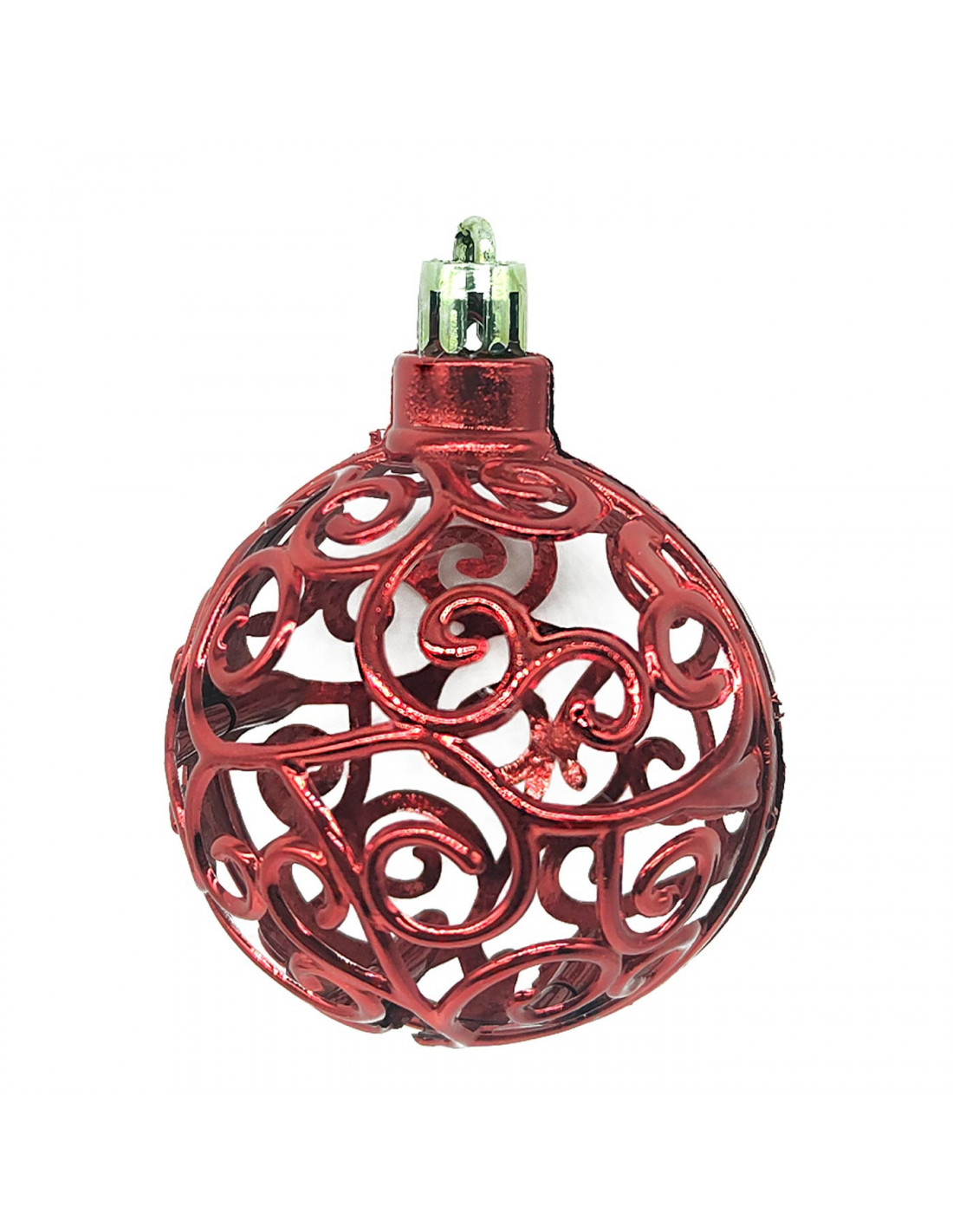 Tradineur - Pack de 16 Bolas de Navidad con diseño de giros - Fabricado en Plástico - Cordón Dorado - Decoración de Navidad - Ø 6 cm - Color Rojo