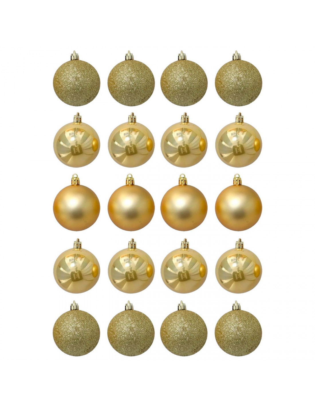 Tradineur - Pack de 20 Bolas de Navidad Modelos surtidos - Fabricado en Plástico - Cordón Dorado - Decoración de Navidad - Ø 4 cm - Color Dorado