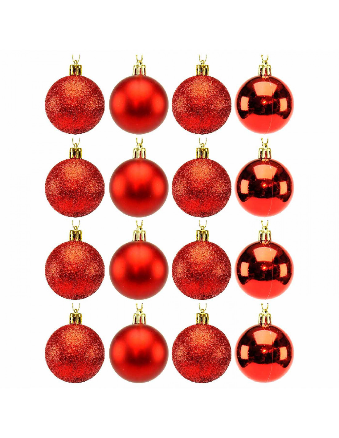 Tradineur - Sets de 16 Bolas para árbol navideño - Fabricado en plástico - Decoración para temporada navideña - Ø 5 cm - Color Rojo
