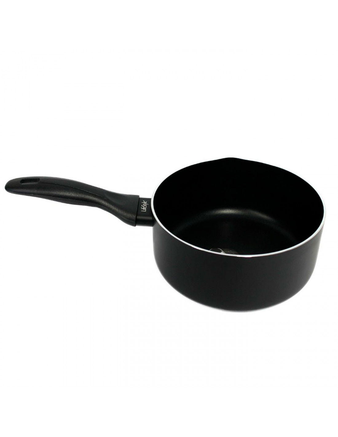Práctica y cómoda cazo de aluminio negro para realizar distintas elaboraciones en cocina o repostería.
