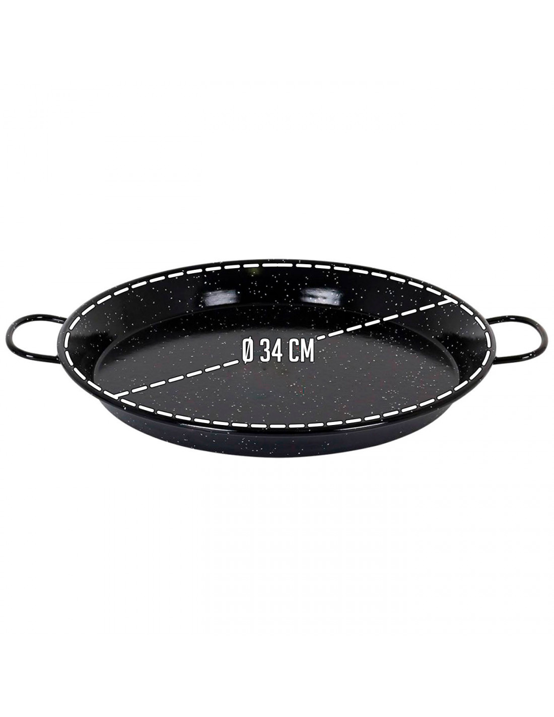 Tradineur - Paellera valenciana esmaltada, cocinar arroces, apta para gas, vitrocerámica, cocina eléctrica y lavavajillas (Negro, Ø 34 cm)