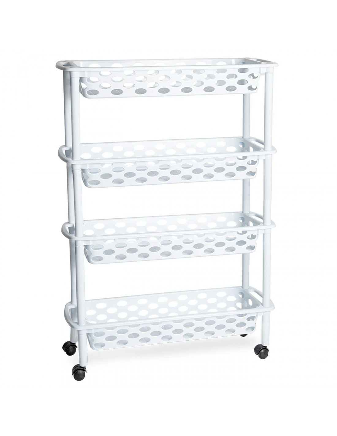 Tradineur - Carrito verdulero de plástico con 4 Niveles y Ruedas - PLFT Aire Slim - Cestas apilables portaobjetos - 84,5 x 58 x 18,5 cm - Color Blanco