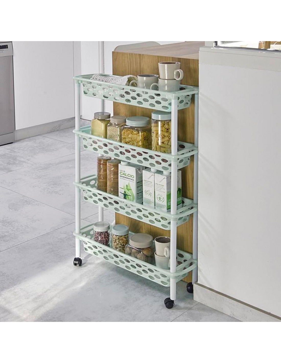 - El carrito verdulero de plástico Modelo Aire Slim cuenta con 4 niveles de almacenamiento, ideal para organizar alimentos, utensilios y otros objetos del hogar.