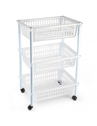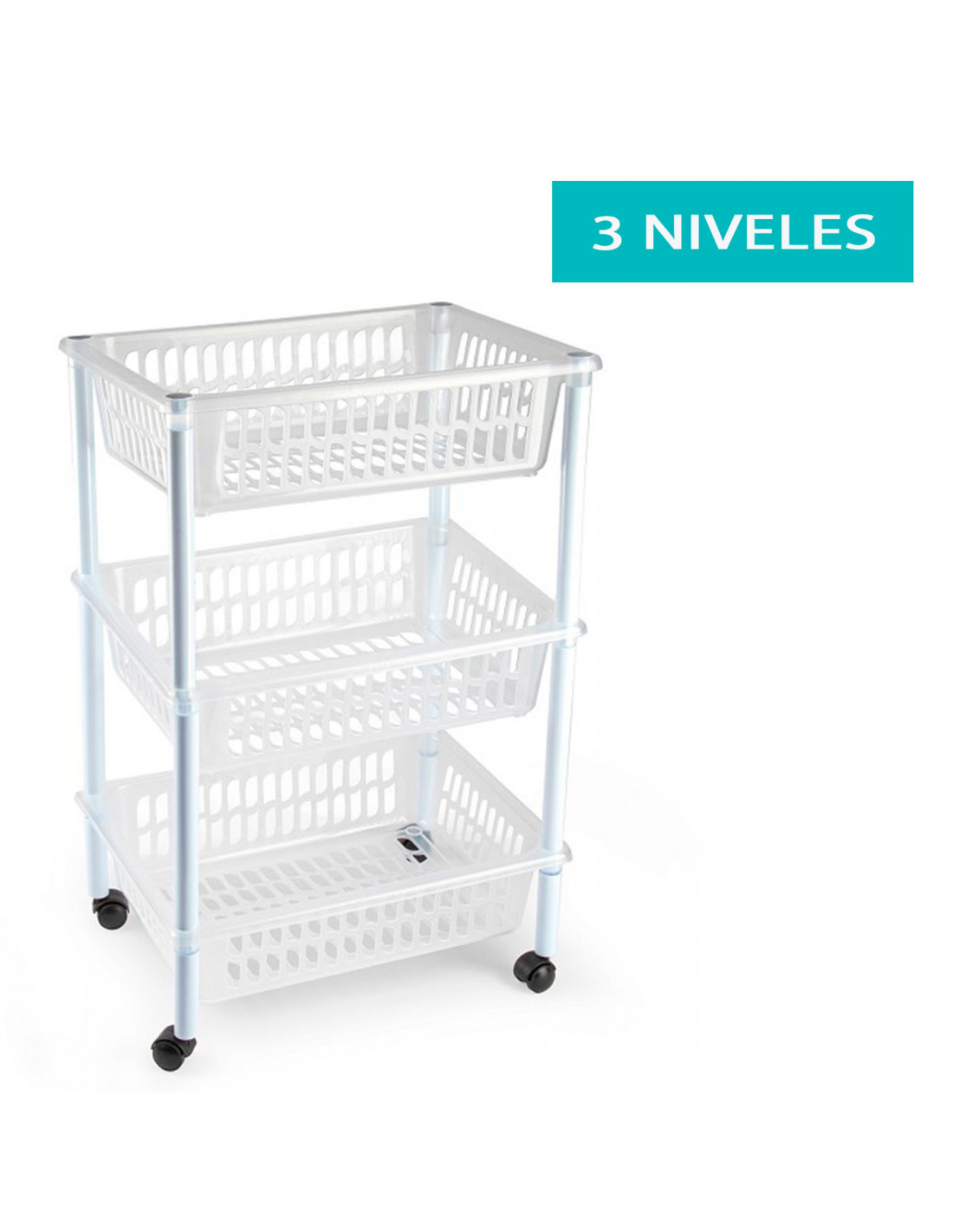 Está fabricado en plástico de gran calidad y cuenta con 3 niveles lo que hace que tenga una gran capacidad. También tiene ruedas para que lo puedas mover fácilmente de un lugar a otro. Fácil montaje.