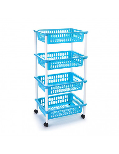 Tradineur - Carro verdulero azul claro modelo PLFT con ruedas 4 cestas 85 x 40 x 30 cm . Carrito portaobjetos estantes multiusos para organizar los espacios domésticos