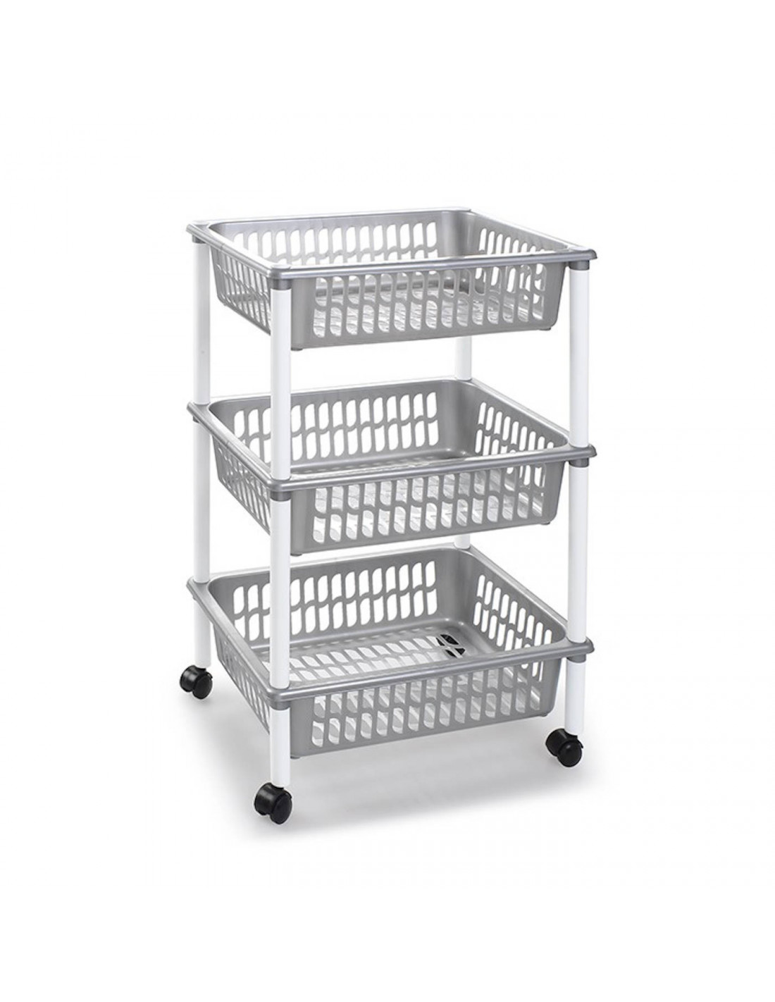 Tradineur - Carro verdulero gris plata modelo PLFT con ruedas 3 cestas 40 x 30 x 61,5 cm. Carrito portaobjetos estantes multiusos para organizar los espacios domésticos
