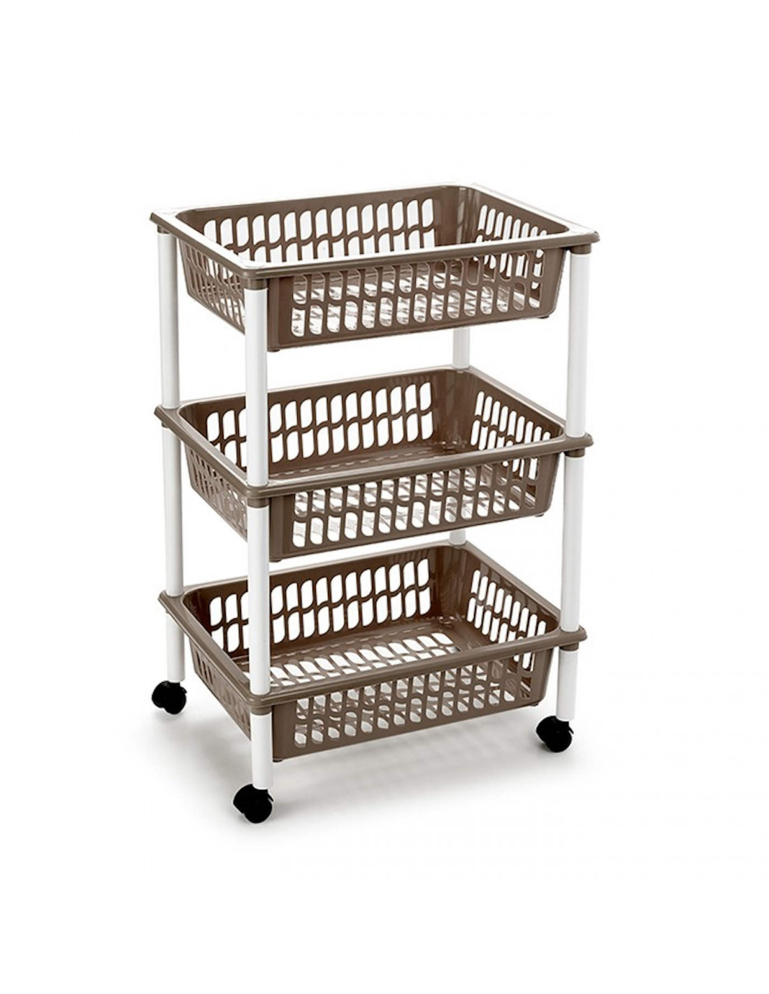 Tradineur - Carro verdulero marron topo modelo PLFT con ruedas 3 cestas 40 x 30 x 61,5 cm . Carrito portaobjetos estantes multiusos para organizar los espacios domésticos