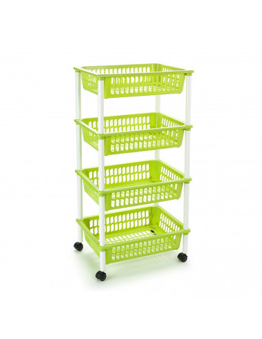 Tradineur - Carro verdulero verde pistacho modelo PLFT con ruedas 4 cestas 85 x 40 x 30 cm . Carrito portaobjetos estantes multiusos para organizar los espacios domésticos