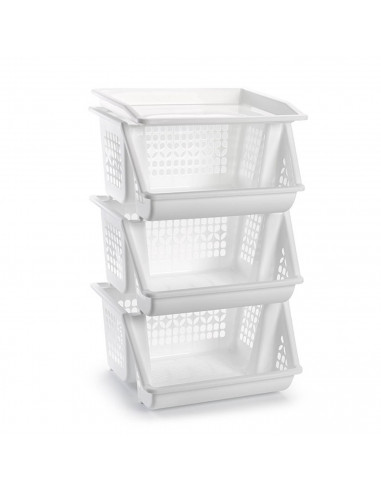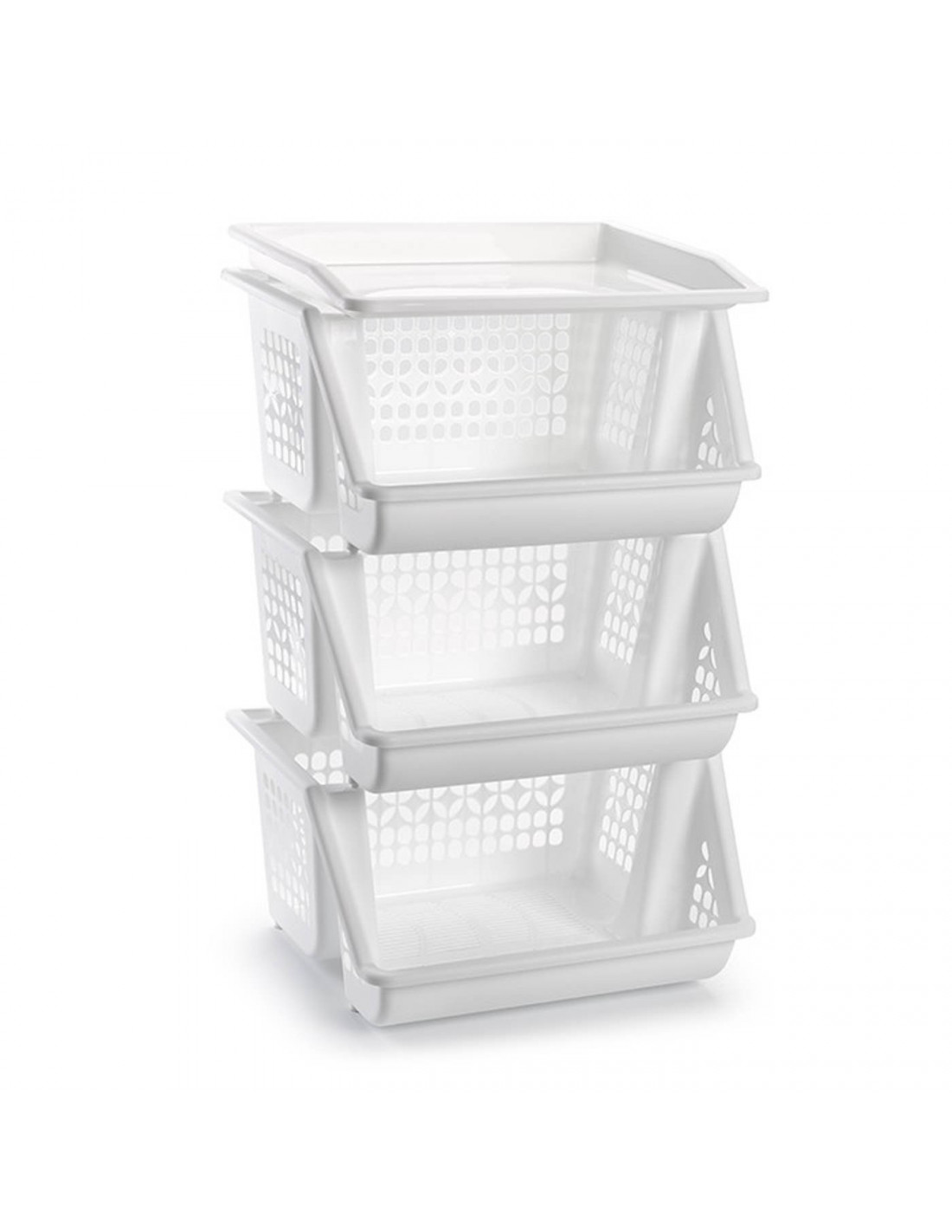 Tradineur - Verdulero apilable modelo PLFT color blanco 3 cestas, 58 x 38 x 29 cm. Cestas portaobjetos apliables, estantes multiusos para organizar los espacios domésticos (PLUS)