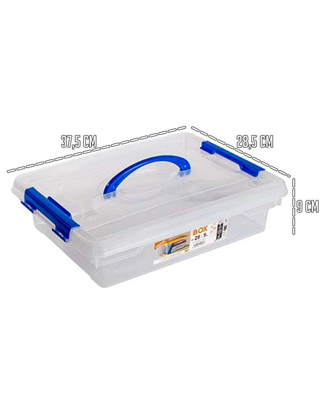 Tradineur - Caja de Almacenamiento N.º 29 - Incluye Asa y cierre clip - Capacidad de 5 Litros - Fabricado en España - Tamaño aprox.: 9 x 37,5 x 28,5 cm