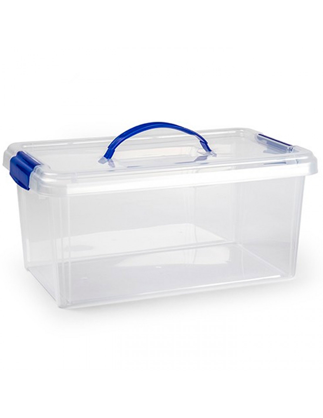Si quieres tener tus objetos a buen recaudo y libres de polvo o suciedad, esta caja de almacenaje Nº24 te será muy útil. Es perfecta para guardar en ella todo tipo de objetos pequeños como juguetes, paños, etc. Sus asideros laterales cierran mediante clip y el asa de la parte superior hace que sea muy cómoda de agarrar por lo que también te vendrá muy bien en mudanzas o viajes.