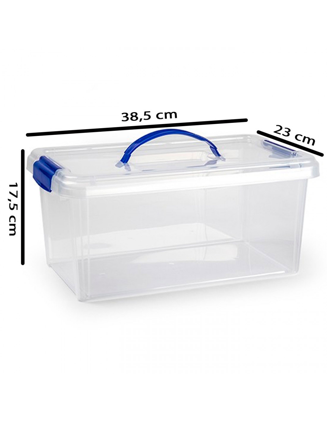 Tradineur - Caja de plástico con tapa y asa Nº24, transparente, cajón de almacenaje multiusos, ordenación, objetos, hogar, 10 litros, 38,5 x 23 x 17,5 cm