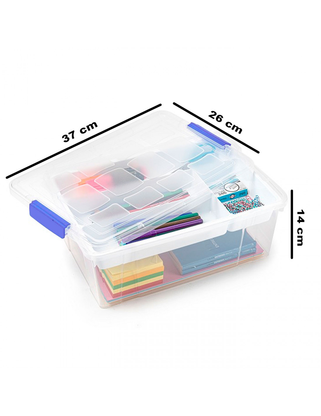 Tradineur - Caja de plástico transparente con tapa Nº 31, incluye bandeja, cajón de almacenaje, ordenación, almacenamiento, fabricada en España, 9 litros, 37 x 26 x 14 cm