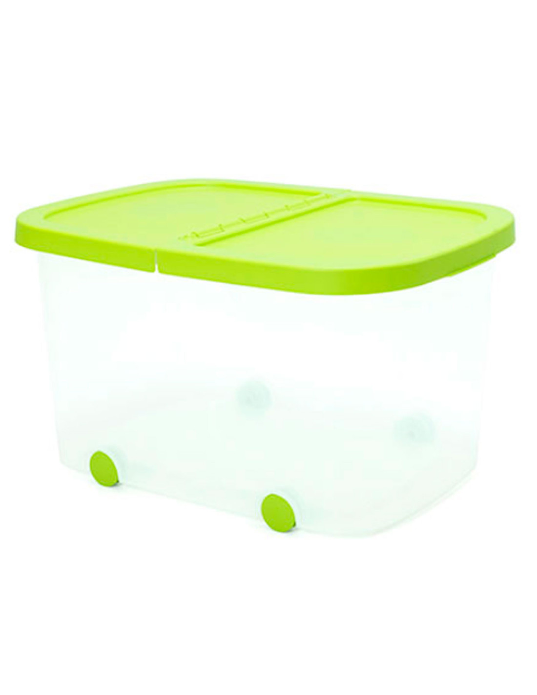 - Práctico diseño: la tapa con doble abertura permite abrir la caja por los dos lados y acceder al contenido más cómodamente. Y las ruedas permiten moverla fácilmente de un lugar a otro