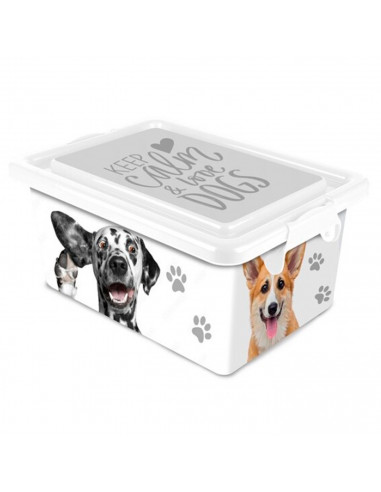 Tradineur Caja de almacenamiento Diseño Perro Blanco Capacidad de 7,5 Litros Fabricado en España - Contenedor para almacenar juguetes, libros, ropa, mantas