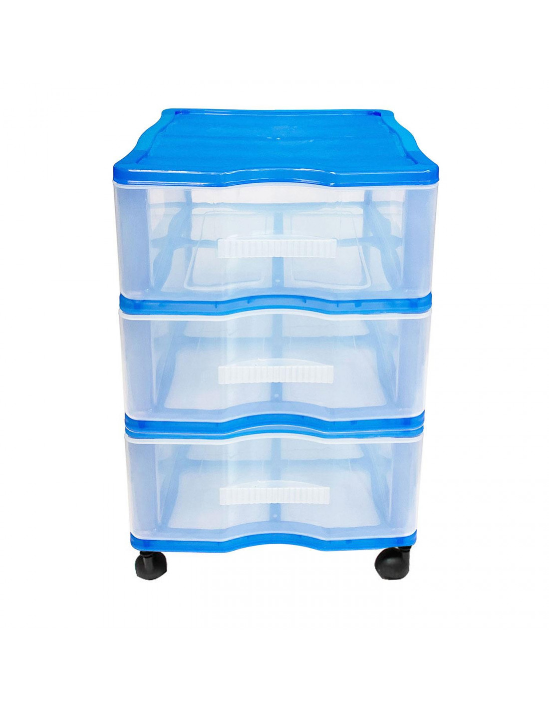 Cajonera azul wagon 3 cajones con ruedas 51.5 x 36.5 x 38 cm. Contenedor de plástico para folios especial para oficina u hogar. Utensilio de ordenación para distintos ámbitos.