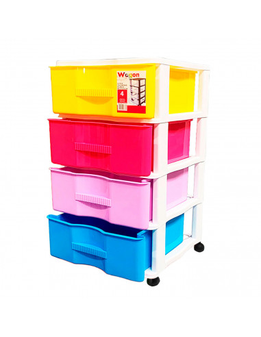 Cajonera con colores surtidos wagon 4 cajones con ruedas 67,5 x 37 x 39,3 cm. Contenedor de plástico para folios especial para oficina u hogar. Utensilio de ordenación para distintos ámbitos.
