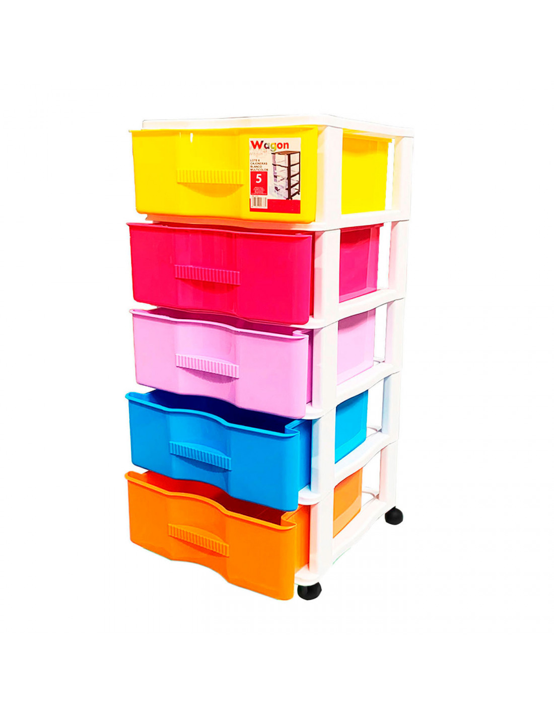 Cajonera de color surtido, con 5 cajones, wagon con ruedas 83,1 x 37 x 39,3 cm. Contenedor de plástico para folios especial para oficina u hogar. Utensilio de ordenación para distintos ámbitos.