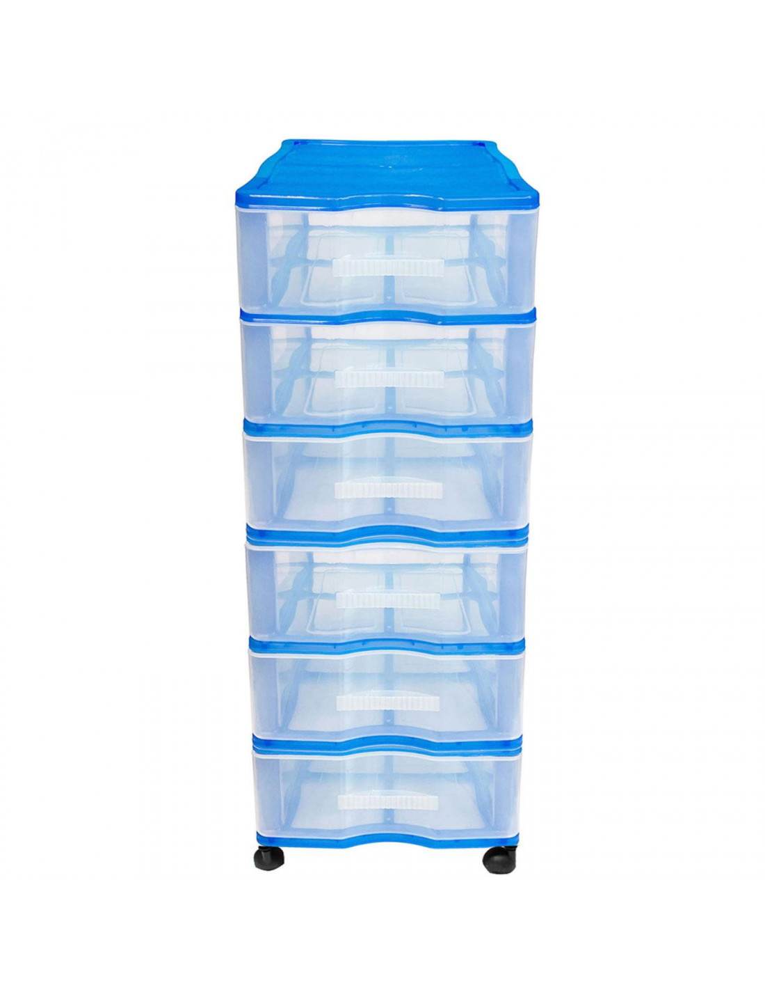 Cajonera wagon,color azul, con 6 cajones, con ruedas, de 98.5 x 36.5 x 38 cm. Contenedor de plástico para folios especial para oficina u hogar. Utensilio de ordenación para distintos ámbito.