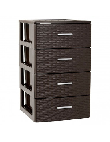 Plastic Forte - Cajonera de ordenación con 4 cajones de plástico efecto mimbre 61,5 x 39,5 x 36,5 cm.