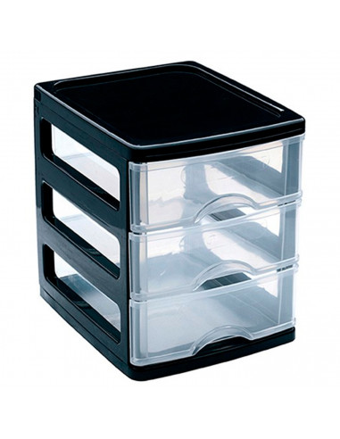 Plastic Forte - Cajonera de plástico Turia, 3 cajones transparentes, torre almacenaje, sobremesa, escritorio, baño, oficina (Negro, 17 x 13,5 x 17 cm)