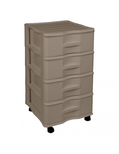 La cajonera Wagon de 4 niveles es una solución práctica y funcional para mantener organizados tus espacios. Fabricada en plástico resistente, combina durabilidad con un diseño moderno en color marrón, que se adapta fácilmente a cualquier estilo de decoración. Con unas dimensiones de 67,5 x 37 x 38 cm, ofrece un almacenamiento amplio sin ocupar demasiado espacio. Sus cajones, también en color blanco, tienen medidas de 14 x 31 x 36 cm, proporcionando un espacio perfecto para organizar ropa, accesorios, o cualquier otro artículo.