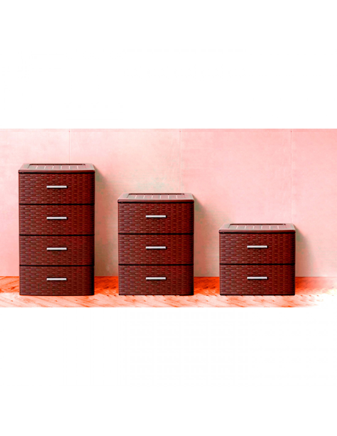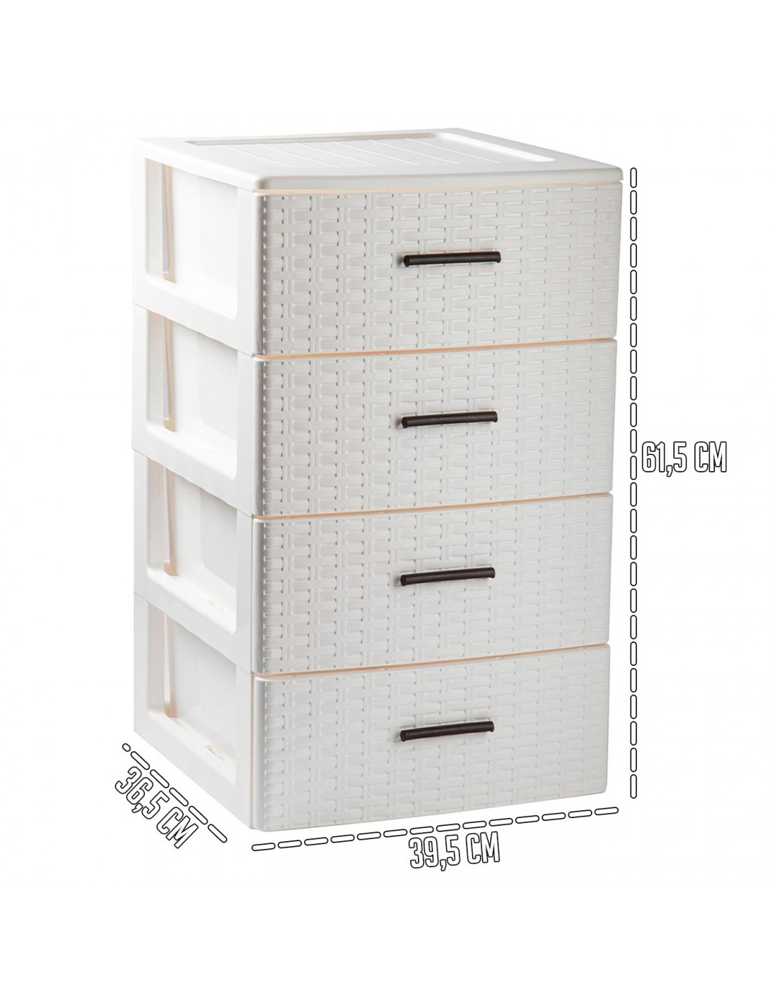 Con esta práctica cajonera de 4 cajones modelo "Rin Rattan" podrás mantener todo en orden fácilmente. Está fabricada en plástico resistente y de gran calidad. Te vendrá muy bien para mantener en orden y a buen recaudo todo tipo de objetos en tu hogar, oficina, negocio, etc.