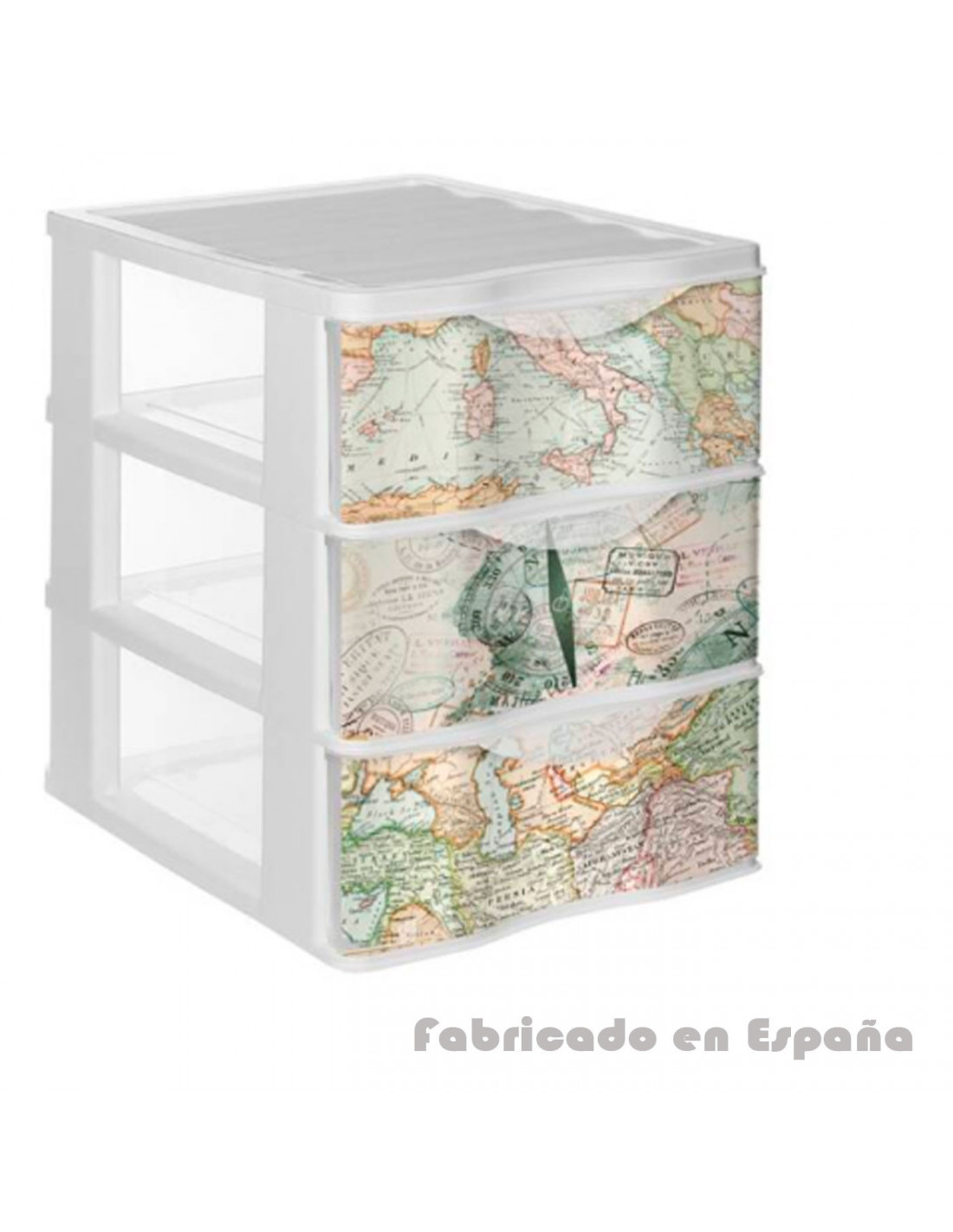 Preciosa cajonera infantil de 3 cajones modelo Mapamundi. Sus múltiples cajones permiten guardar varias cosas por separado y clasificarlas por tipo; y al ser transparentes también facilitan encontrar las cosas. No solo sirve para almacenar artículos de papelería, sino también para guardar juguetes, ropa, etc. Ideal para colocar en la sala de estar, dormitorio o estudio.