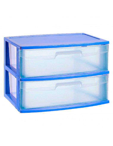 Tradineur - Cajonera de organización Nilo - Ideal para el hogar o el trabajo - Fabricación en plástico - 2 Cajones Translucidos - 41,5 x 56 x 40 cm - Color Azul