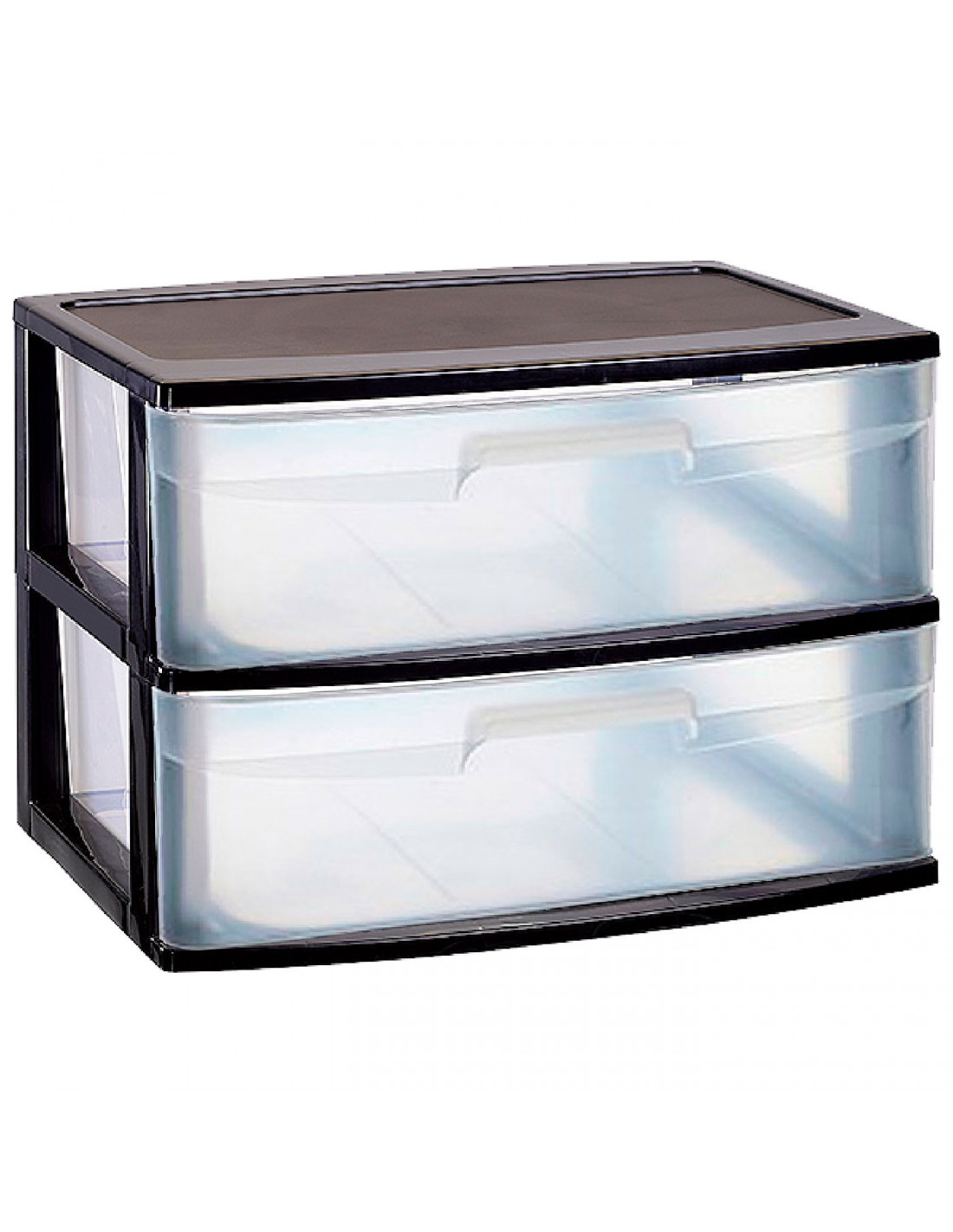 Tradineur - Cajonera de organización Nilo - Ideal para el hogar o el trabajo - Fabricación en plástico - 2 Cajones translucidos - 41,5 x 56 x 40 cm - Color Negro