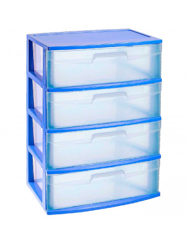 Tradineur - Cajonera de organización Nilo - Ideal para el hogar o el trabajo - Fabricación en plástico - 4 Cajones Translucido - 80,5 x 56 x 40 cm - Color Azul