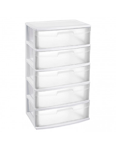 Tradineur - Cajonera de organización Nilo - Ideal para el hogar o el trabajo - Fabricación en plástico - 5 Cajones translucidos - 100,5 x 56 x 40 cm - Color Blanco