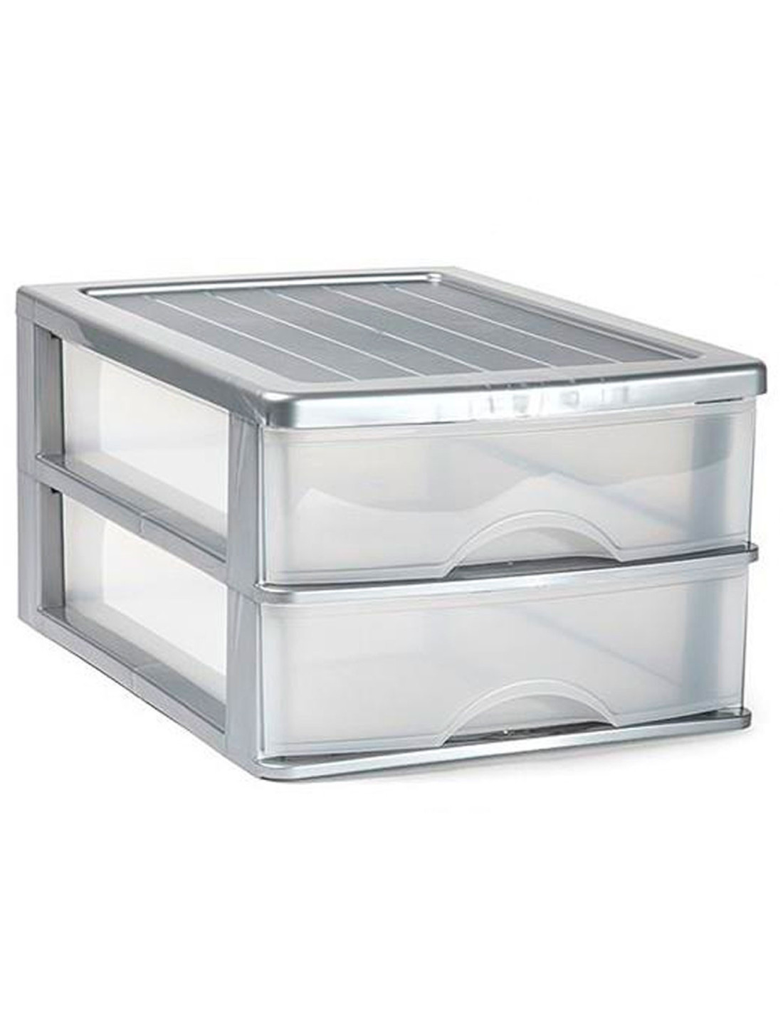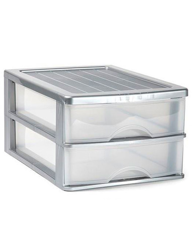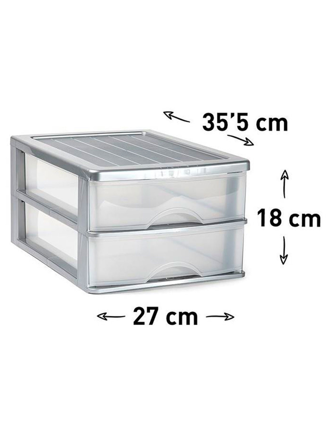 Tradineur - Cajonera de sobremesa - Fabricado en España - 2 Cajones Transparentes - Torre de almacenaje, armario, baño, oficina - 18 x 27 x 35,5 cm - Color Plata