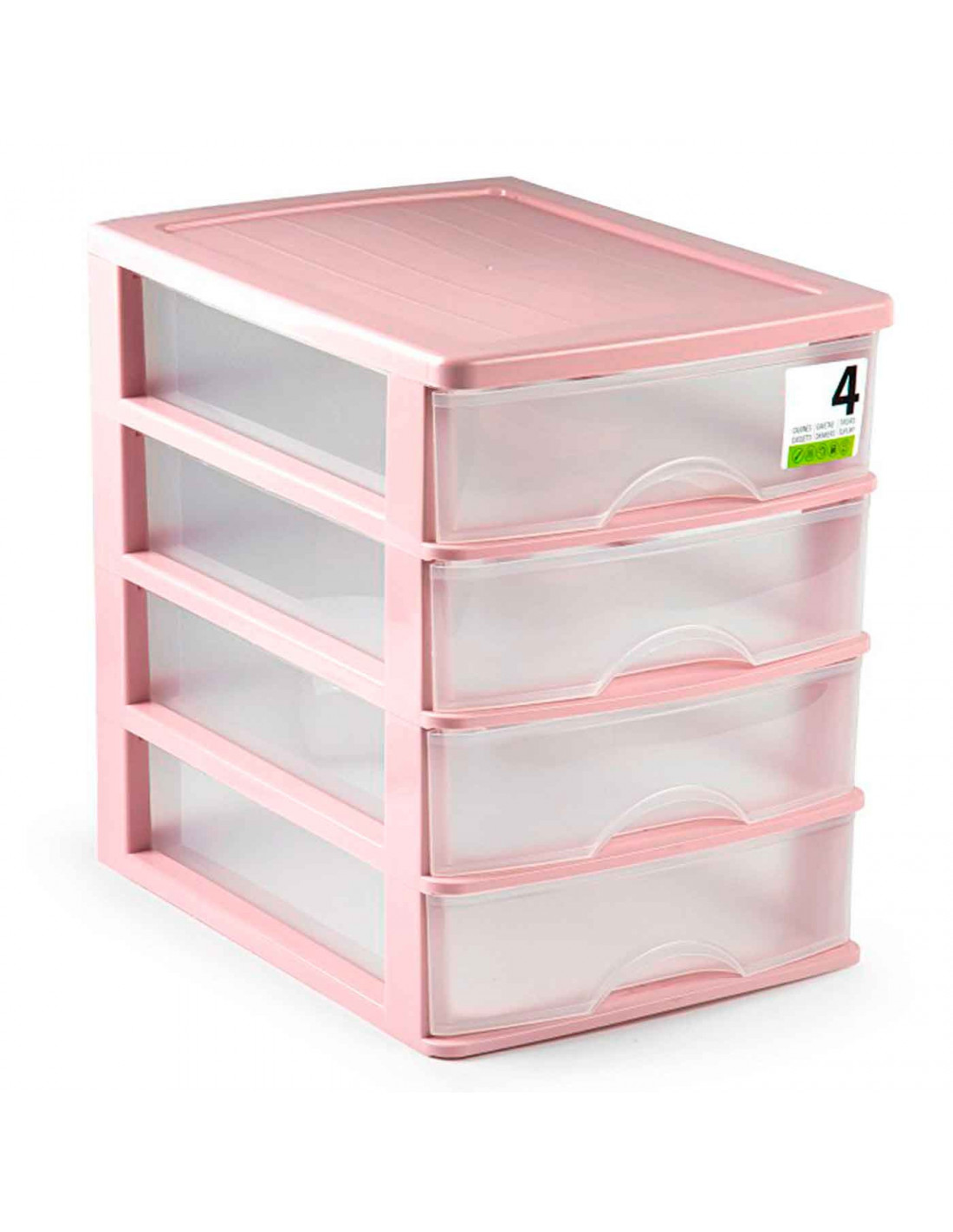 Tradineur - Cajonera sobremesa de plástico, 4 cajones, torre de almacenaje multiusos, escritorio, armario, baño, oficina (Rosa, 35 x 27 x 35,5 cm)