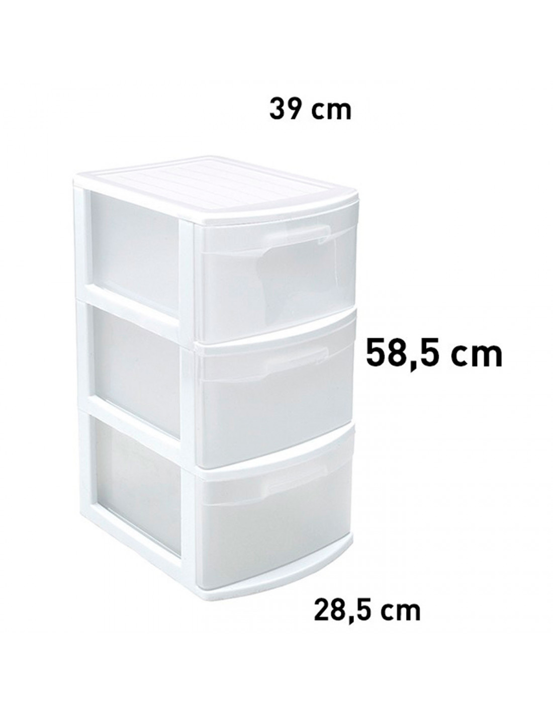 Tradineur - Cajonera támesis de plástico blanco, 3 cajones transparentes, 58,5 x 28,5 x 39 cm, torre de almacenaje y organización multiusos, oficina, hogar