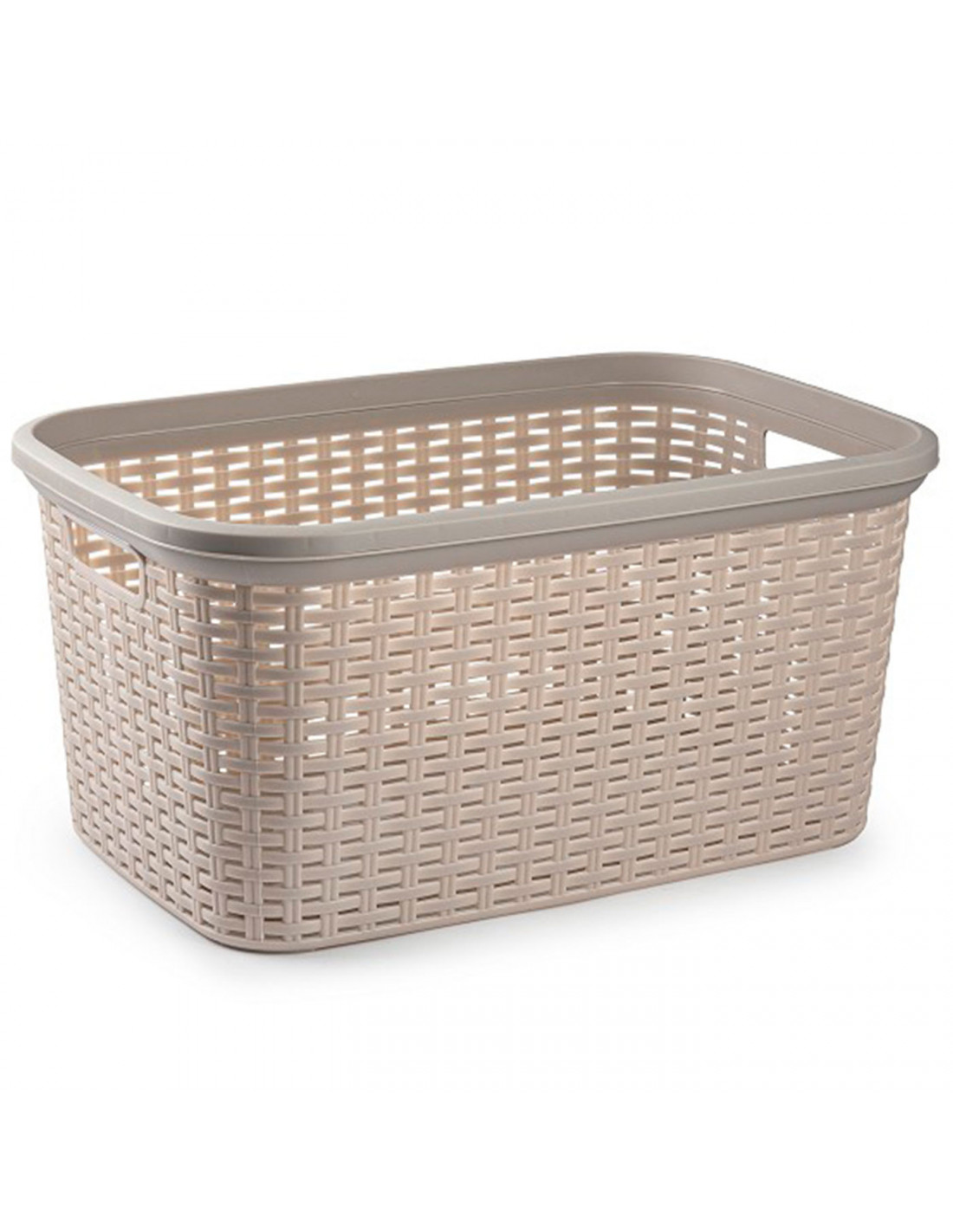 Tradineur - Cesta de plástico "Rattan" con asas, recipiente para la colada, diseño imitación de mimbre, lavandería, hogar, fabricada en España (Topo, 35 litros, 26,5 x 53,5 x 36 cm)
