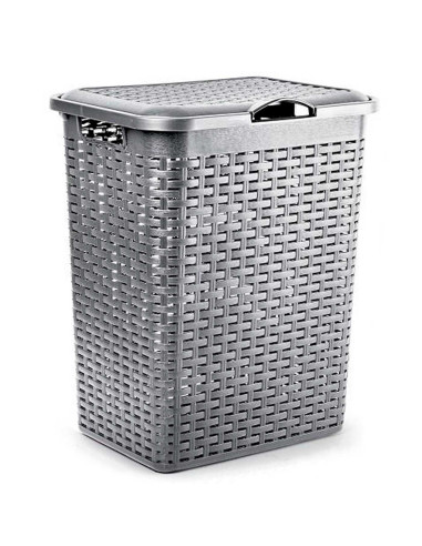Este estupendo cesto para la ropa sucia de color gris plata te permitirá almacenar una gran cantidad de prendas de ropa. Es muy ligero y cuenta con una capacidad de 38 litros. También tiene asas a los lados para poder moverlo cómodamente y una práctica tapa con asa que permite abrirlo fácilmente.