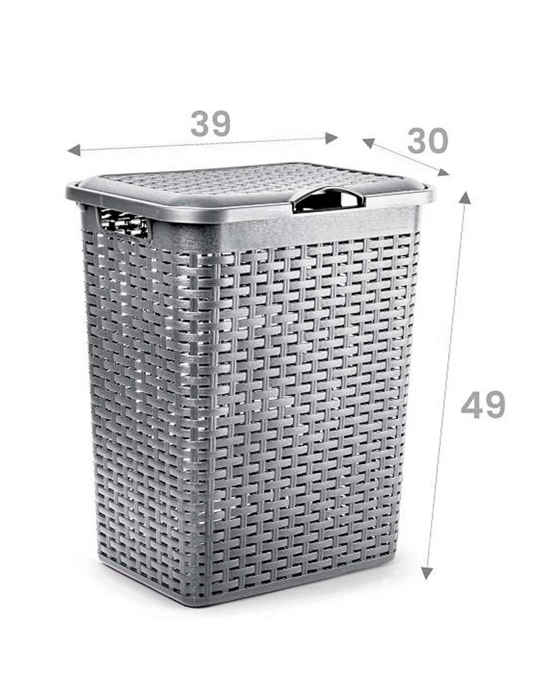 Tradineur - Cesto rattan para ropa sucia con tapa y asas, pongotodo de plástico, cubo para colada, imitación de mimbre, fabricado en España (Plata - 38 litros - 49 x 38,5 x 29,5 cm)