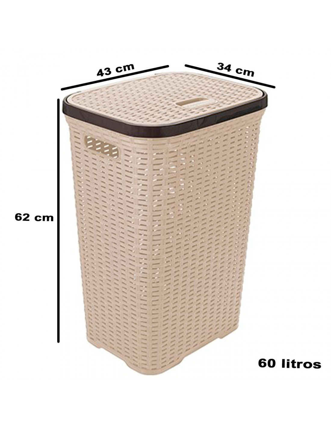 El cesto está fabricado en plástico polipropileno de gran calidad con un bonito diseño de imitación de mimbre y sus medidas aprox. son de 62 x 43 x 34 cm (alto x ancho x profundo).