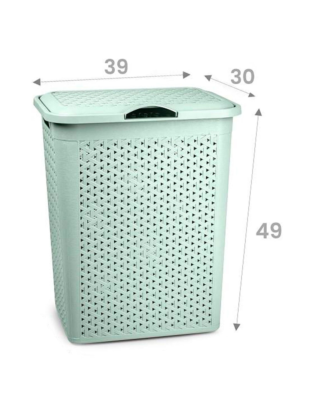 Tradineur - Cesto para ropa sucia con tapa y asas, pongotodo, cubo para colada de plástico, imitación de mimbre, fabricado en España (Verde pastel - 38 litros - 49 x 38,5 x 29,5 cm)