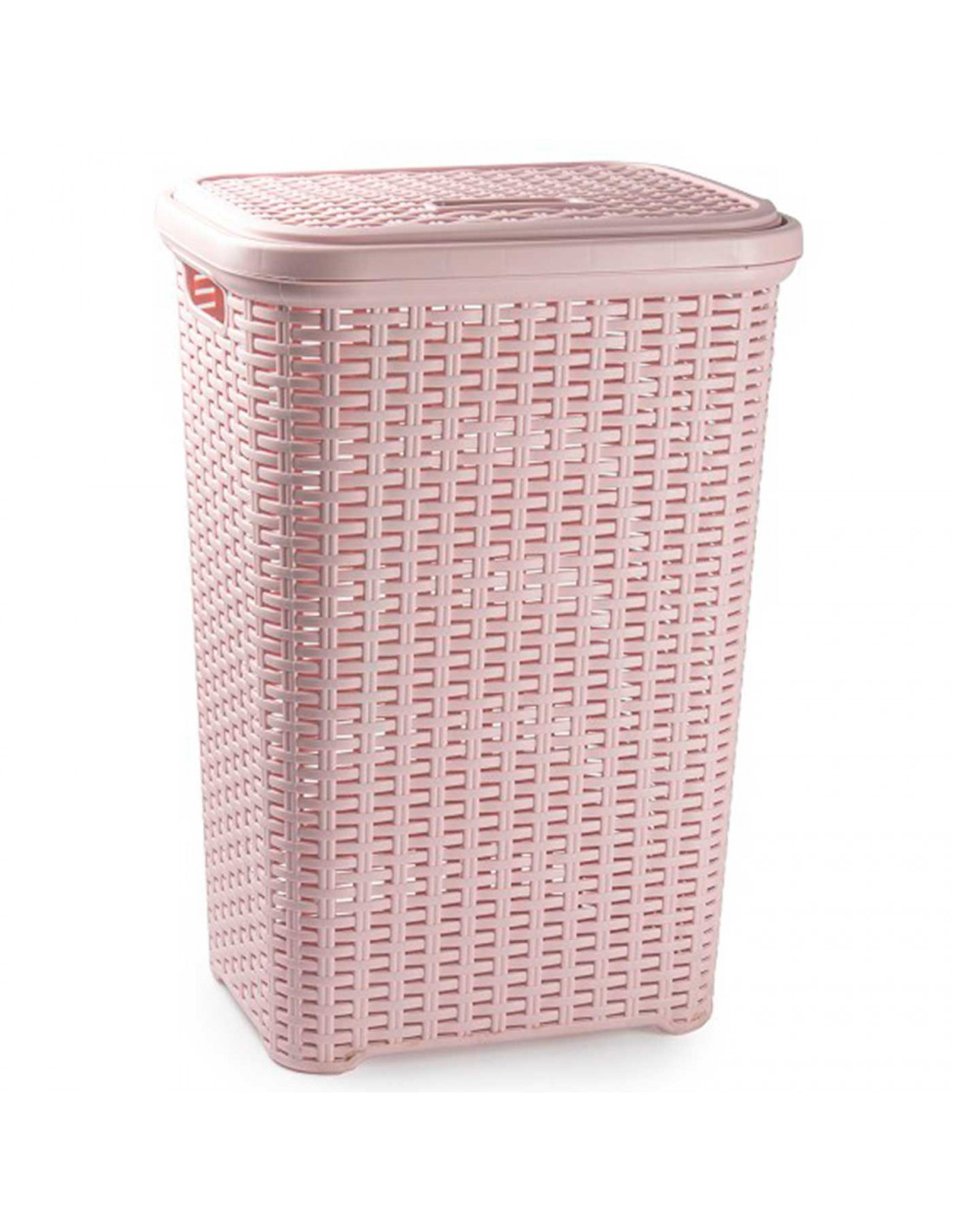 Este estupendo cesto para la ropa sucia de color rosa palo te permitirá almacenar una gran cantidad de prendas de ropa. Es muy ligero y cuenta con una capacidad de 60 litros. Tiene asas a los lados y tapa.