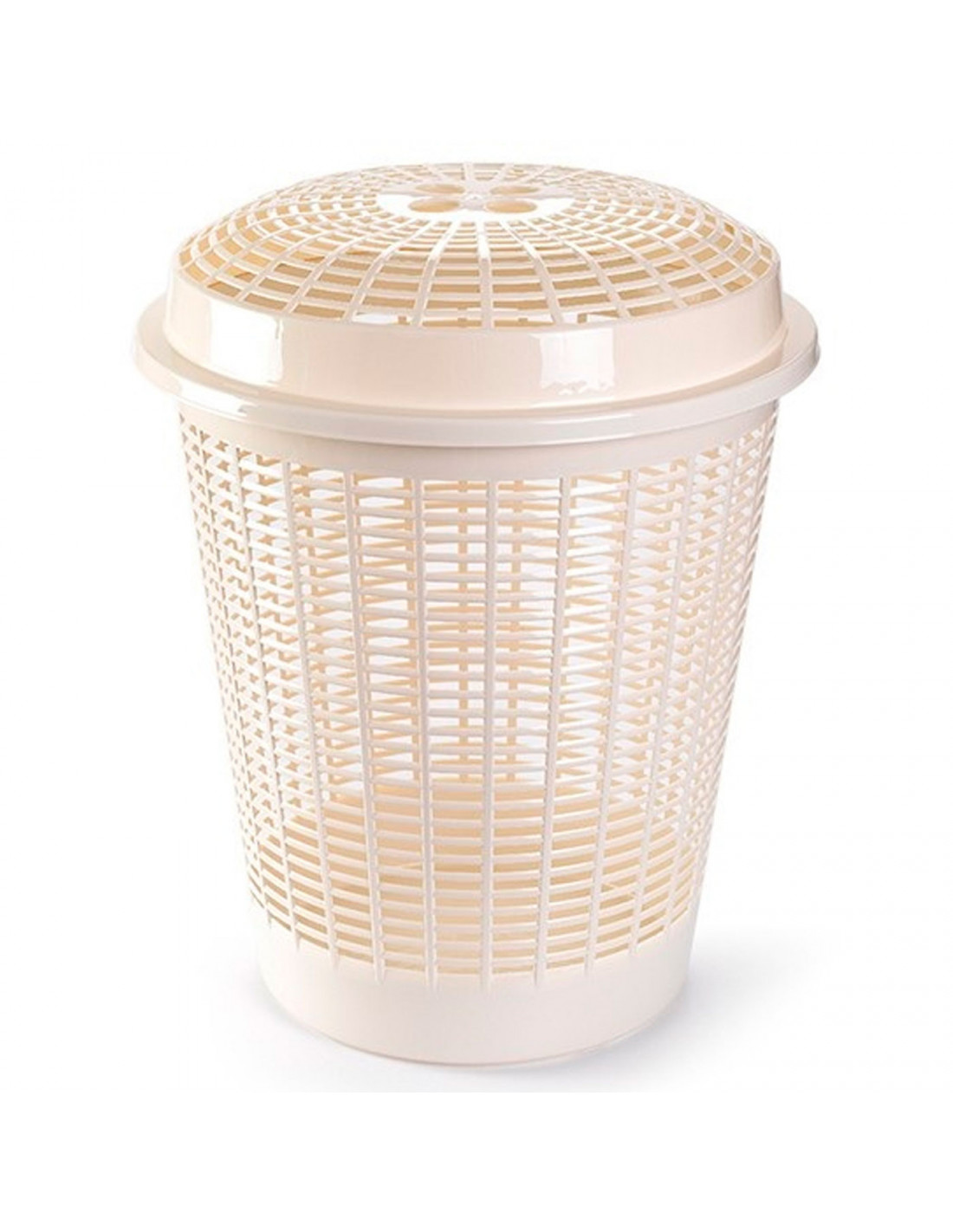 Este estupendo cesto redondo para la ropa sucia de color beige te permitirá almacenar una gran cantidad de ropa sucia. Tiene tapa, es muy ligero y cuenta con una capacidad de 50 litros.