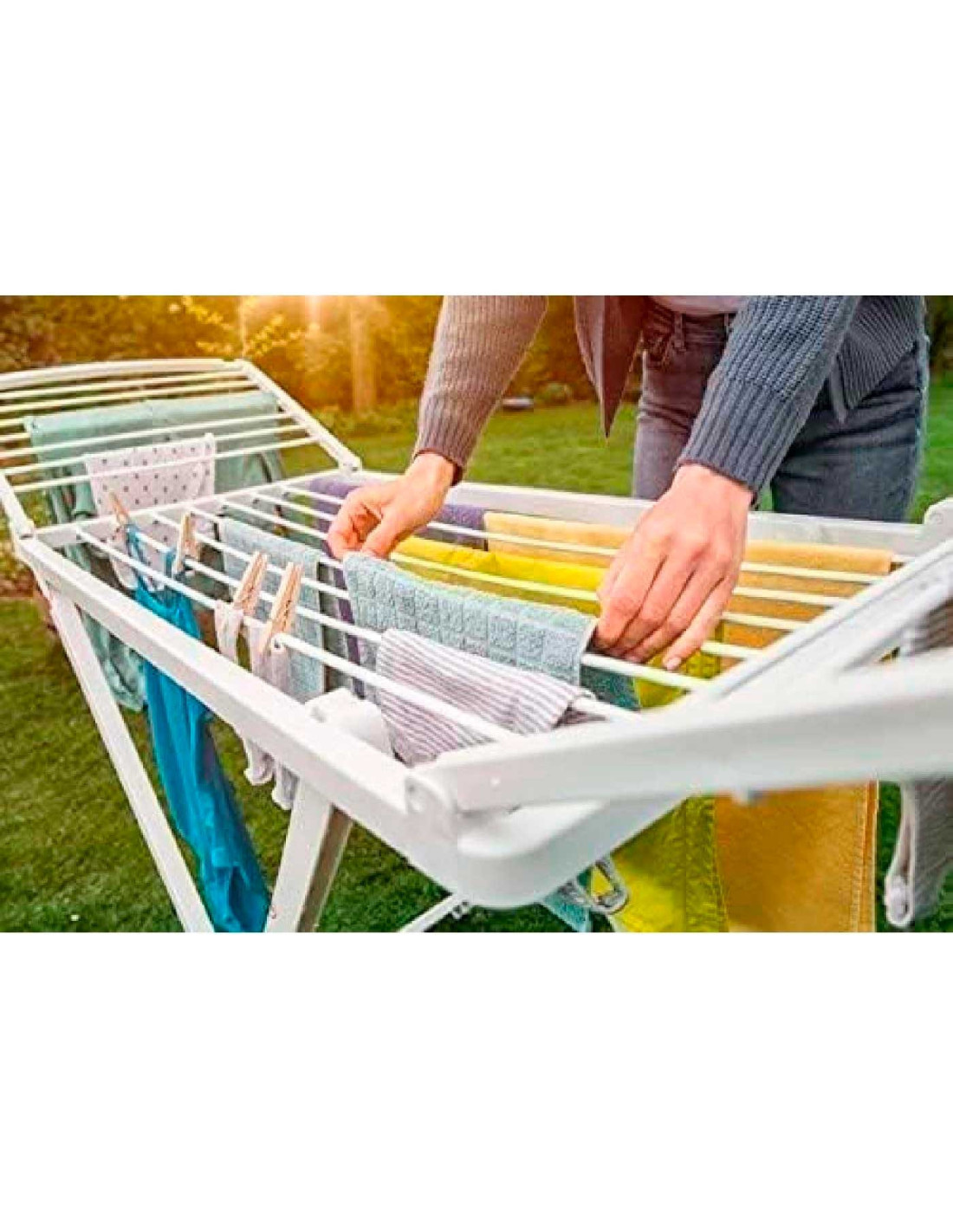 Este práctico tendedero plegable de resina 100% en color Beige es ideal para colocar en jardines, terrazas o dentro de casa y secar en él toda tu ropa. Es funcional y robusto, no se oxida y ocupa poco espacio. Su estructura de resina lo hace resistente al sol.