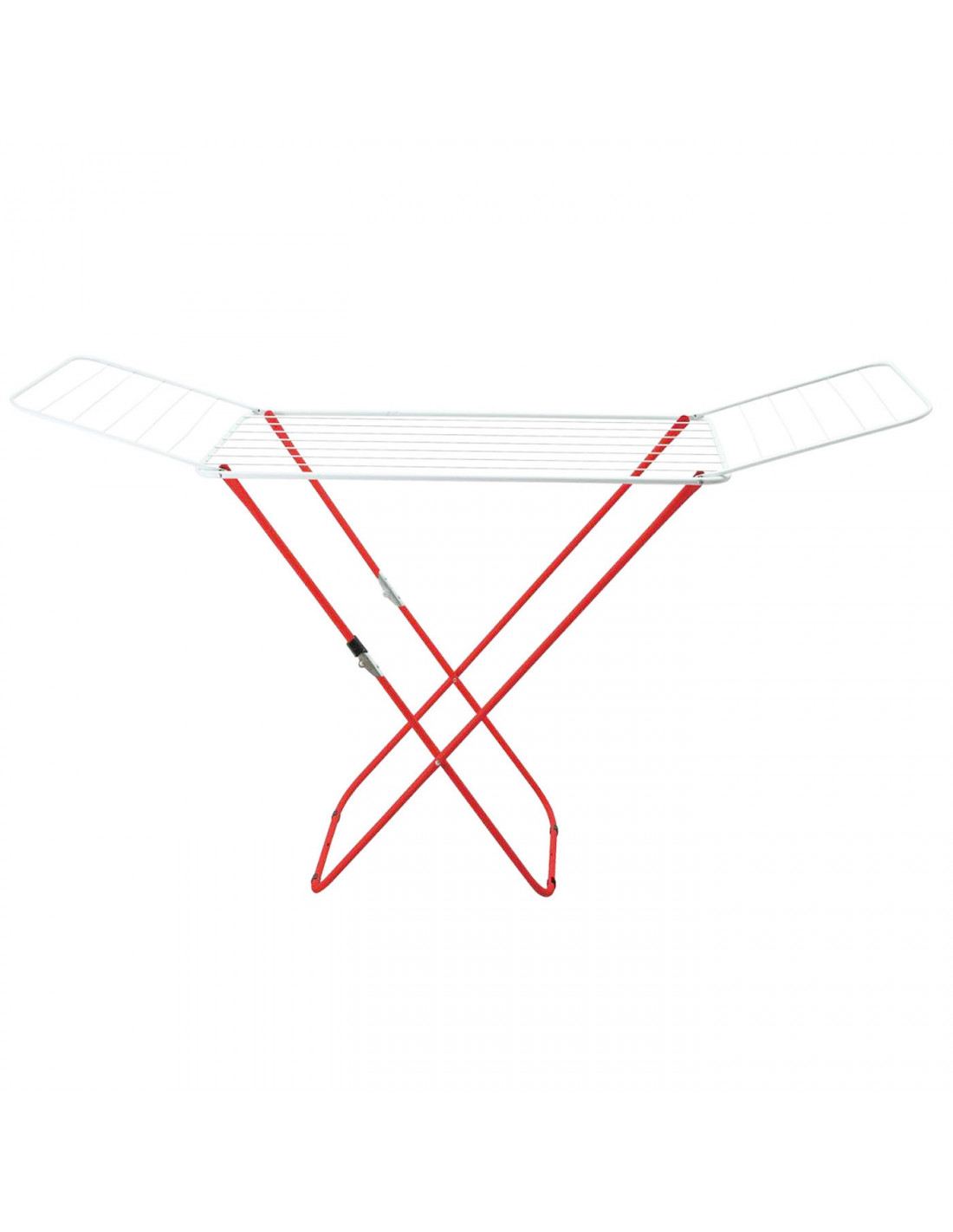 Este práctico tendedero plegable metálico con un bonito diseño en colores rojo y blanco es ideal para colocar tanto en el interior del hogar como en patios, terrazas, jardines y secar en él una gran cantidad de ropa. Es funcional, robusto y ligero.