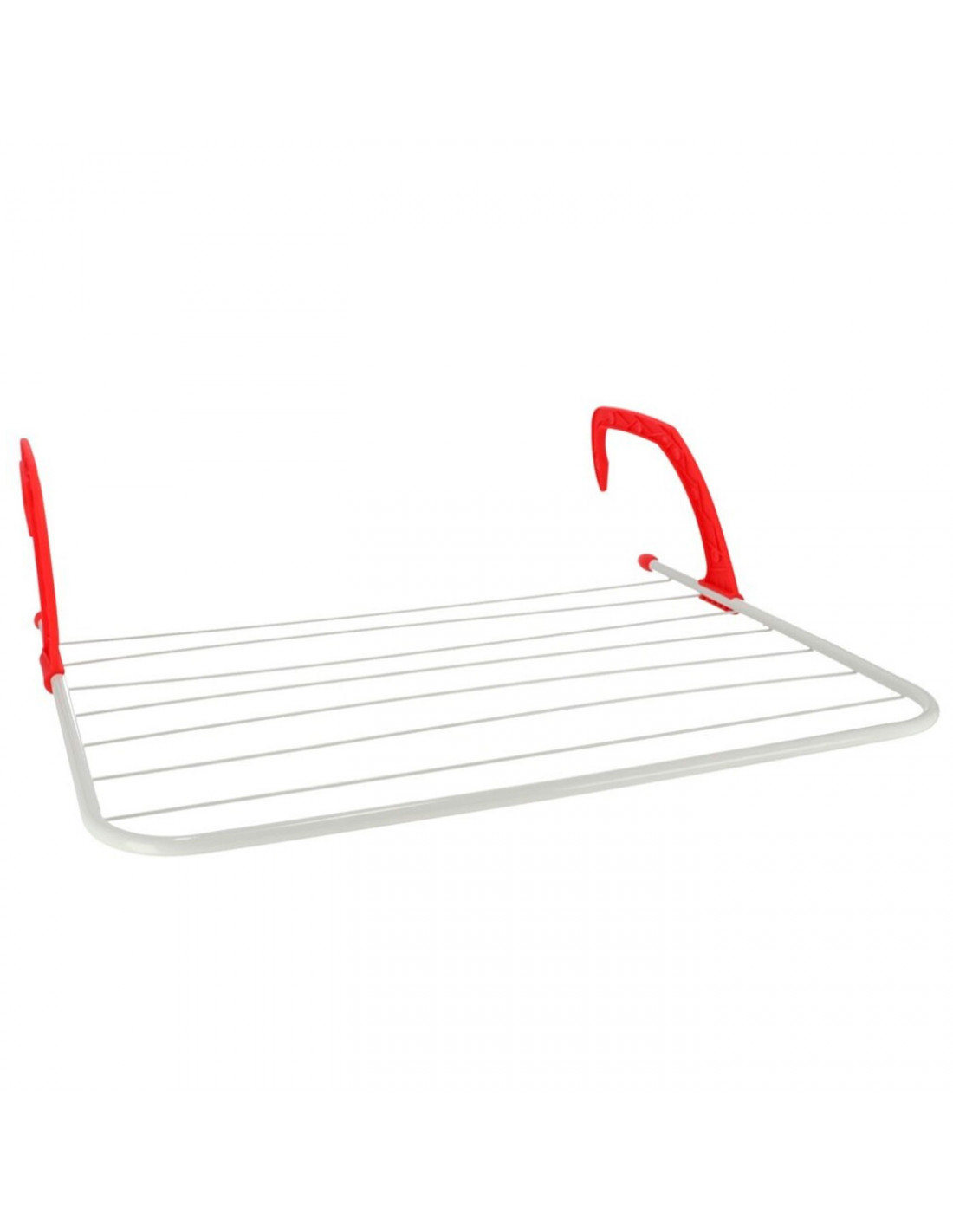 Este práctico tendedero plegable con una superficie de tendido aprox. de 7 metros secará rápidamente y en poco espacio su colada: desde lencería hasta toallas, etc. Sus amplios ganchos hacen que se adapte a múltiples soportes: radiador, la barandilla del balcón, el alféizar de la ventana, etc. Su estructura metálica blanca cuenta con 7 varillas y los ganchos son de plástico resistente de color rojo. Es resistente al óxido, duradero y estable.