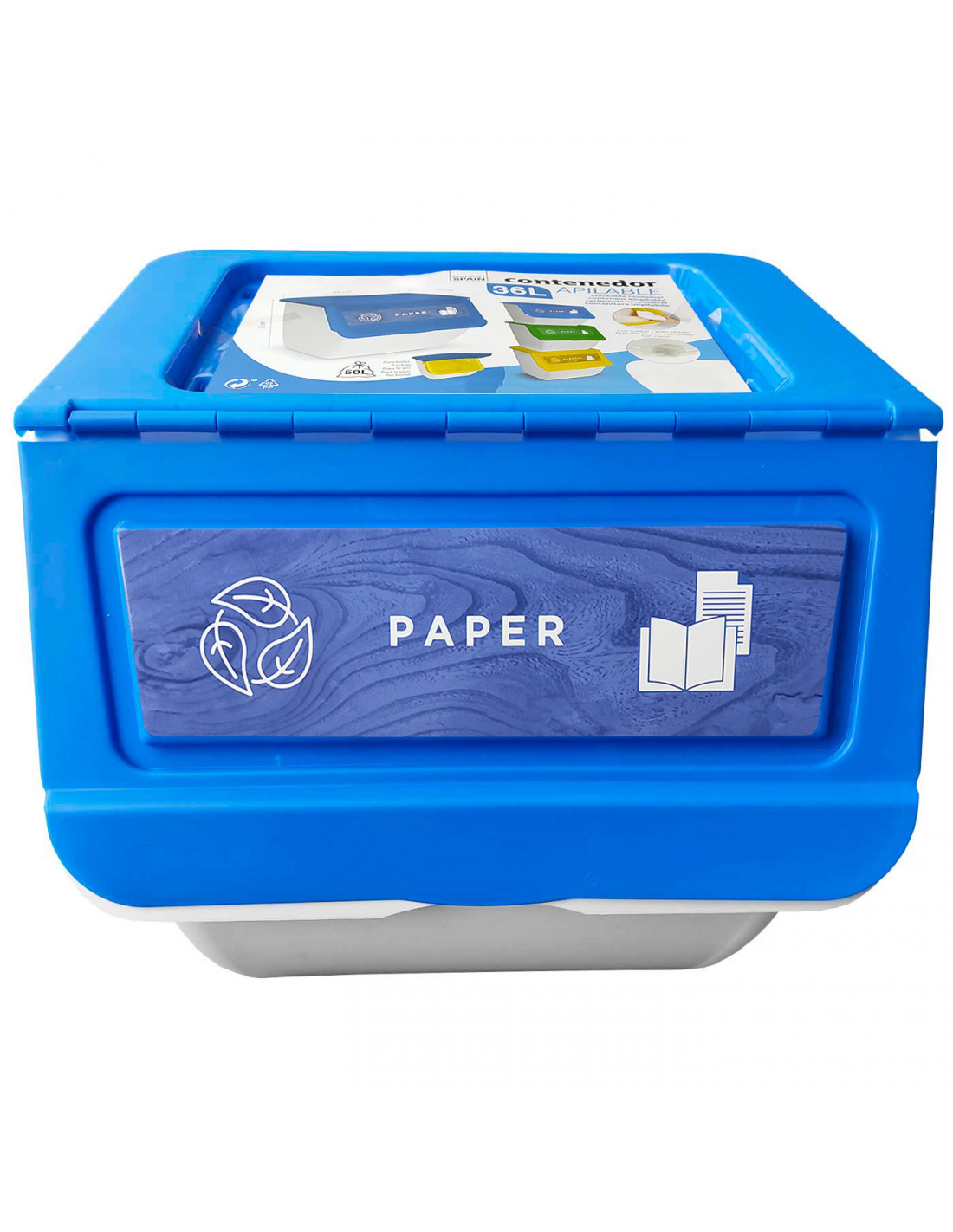 Este fantástico contenedor apilable de 36 litros te permitirá almacenar y reciclar una gran cantidad de restos de basura. Está fabricado en plástico polipropileno resistente y duradero de color azul y blanco. Es apilable, así que si compras distintos modelos podrás colocar uno encima de otro y así aprovechar mejor el espacio. Su tapa abatible te permitirá introducir los residuos fácilmente sin tener que moverlo. En caso de querer cambiarlo de sitio, sus cuatro ruedas te permitirán hacerlo sin esfuerzo.